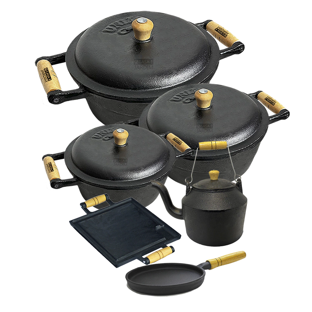 Durabilidade Imbatível: Feito de ferro fundido, este conjunto é incrivelmente durável e resistente ao desgaste, proporcionando anos de uso confiável.
