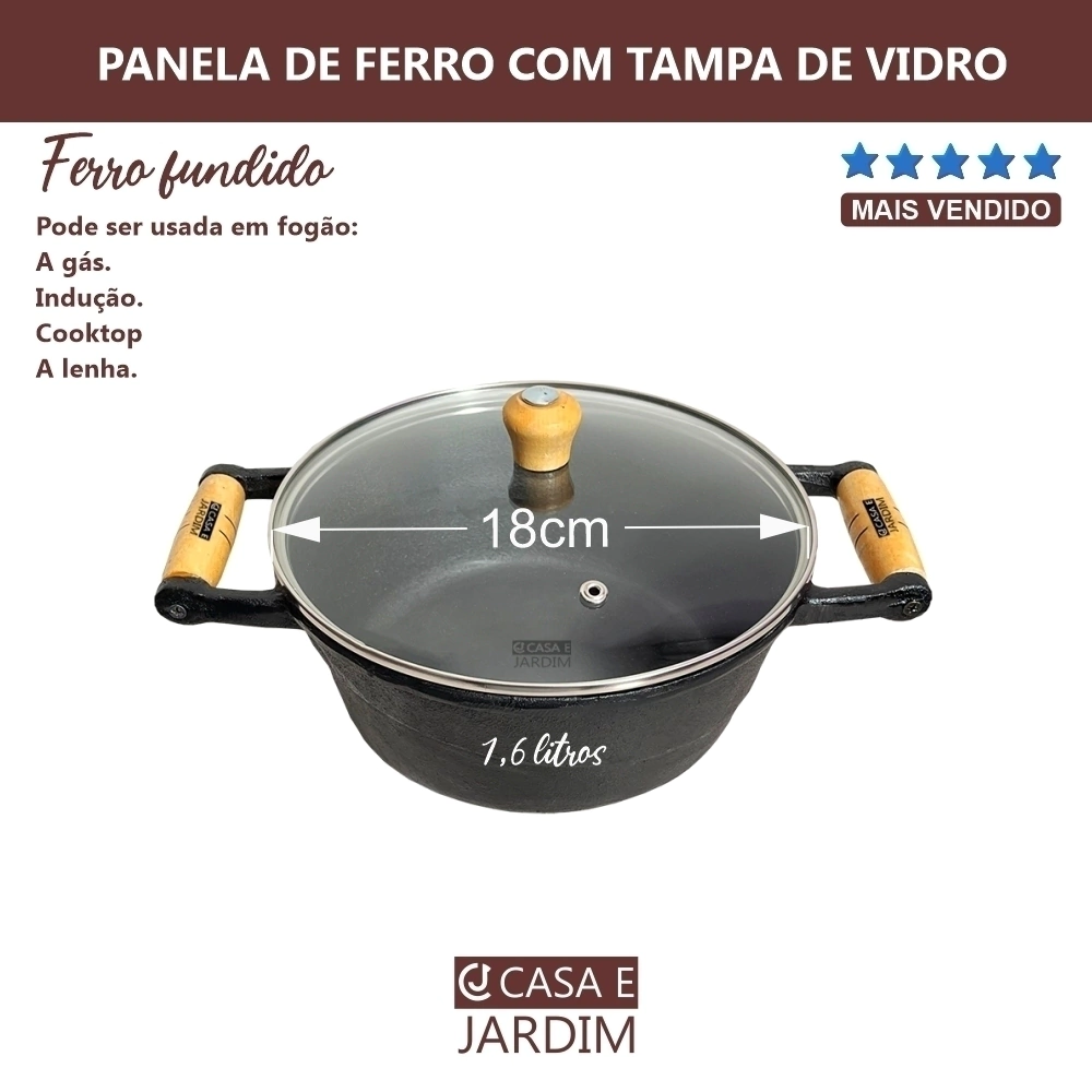 Todas as panelas de ferro do modelo caçarola podem ser utilizadas em todos os tipos de fogão a gás, a lenha, elétrico e também em cooktop de indução.