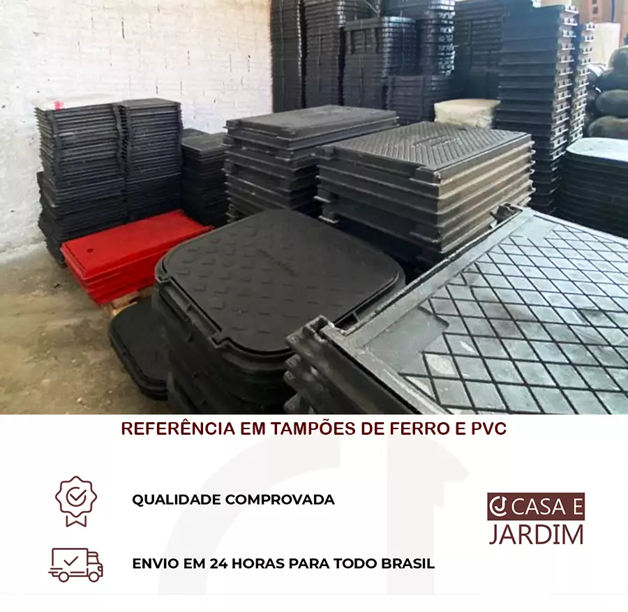 Casa e Jardim tem uma linha completa em tampas de ferro e pvc para construção como, tampões para proteger caixas de passagem, tampa de esgoto, tampa de águas pluviais, tampa de ferro fundido tampa de água potável, tampa para calçada, tampa de ferro elétrica, entre outros.