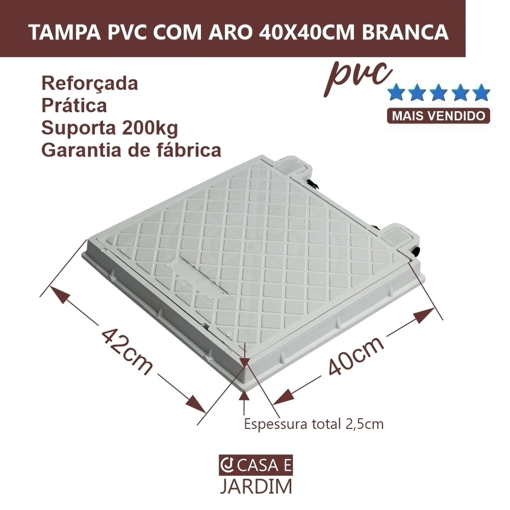 A Tampa De Pvc P/ Esgoto Elétrica Caixa Passagem 40x40 Simples foi projetado para tampar, caixas de passagem de tubulação, esgoto, águas pluviais, água potável, redes de telecomunicações, eletricidade entre outros. Facilitando o acesso a válvulas, registros, quadro de Distribuição.